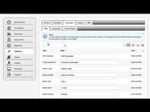 Once you did that, go to OPTIONS>LANGUAGES>TITLES. Use the flag system at the upper right of the screen to change languages and replace the English titles with your translation. For more details watch a video on how to translate the Shuttle Booking Software using the Admin.